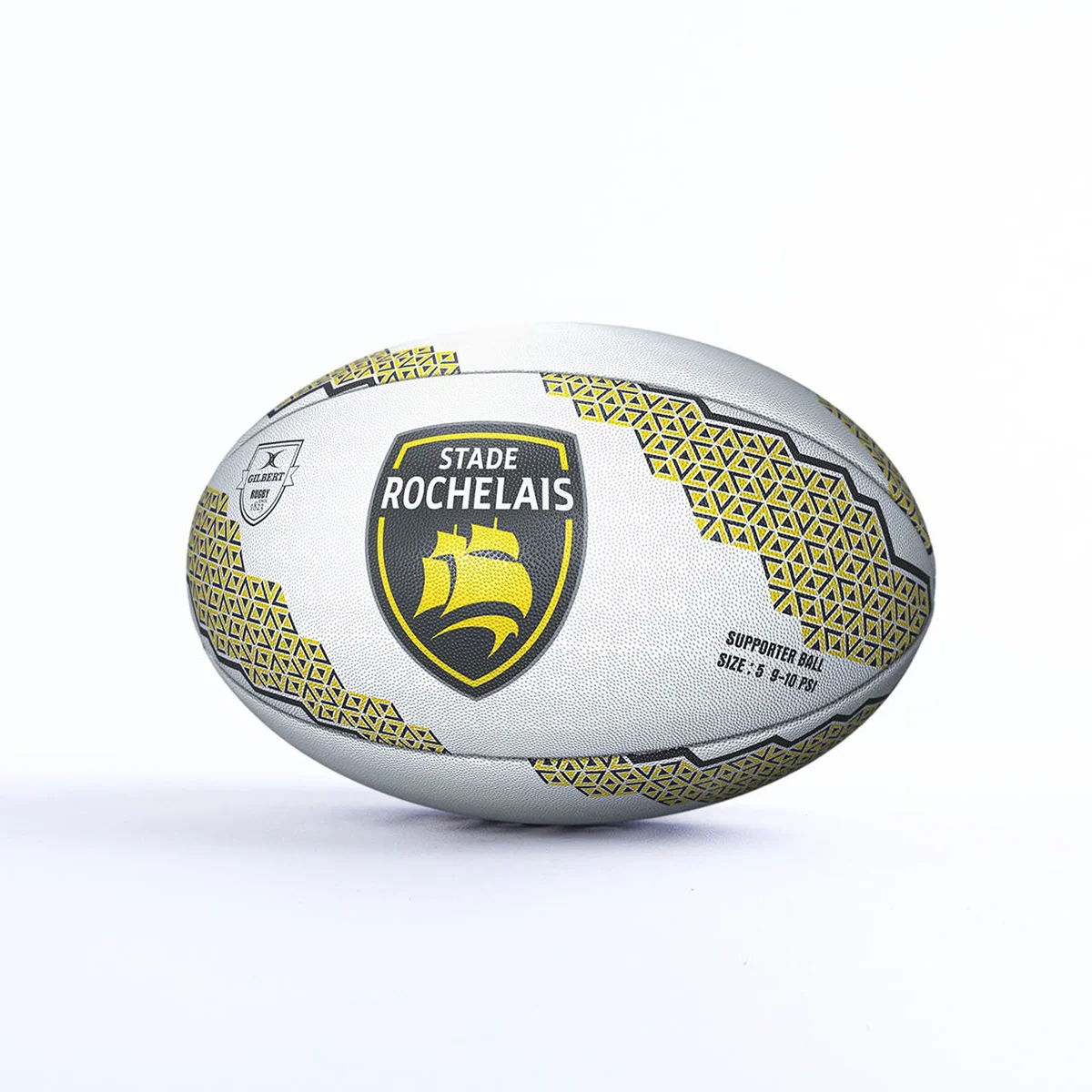 Le ballon de rugby supporter du Stade Rochelais est bien plus qu’un simple accessoire. Conçu par la marque Gilbert, reconnue pour ses produits de qualité, il arbore fièrement les couleurs et le logo officiel du Stade Rochelais. Sa taille 5 en fait le choix parfait pour les amateurs et les fans souhaitant s’entraîner ou jouer avec un équipement à l’image de leur club favori.