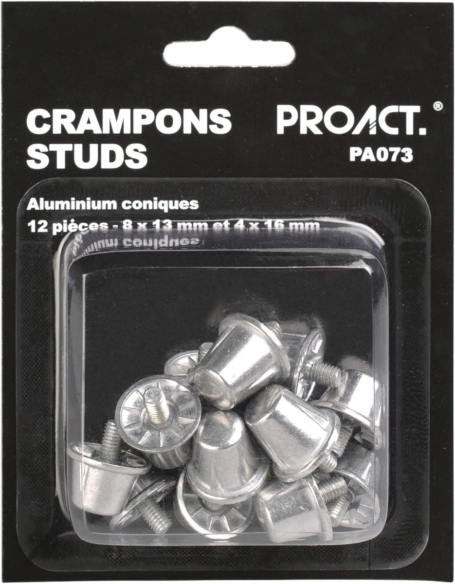 Boîte de crampons alu coniques pour la pratique du rugby sur terrain gras. Livrés sous blister.