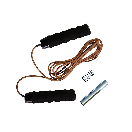 Corde à sauter en cuir utilisée pour les entrainements de cross-training. Poids ajustable par l’adjonction de 2 lests de 250 gr.