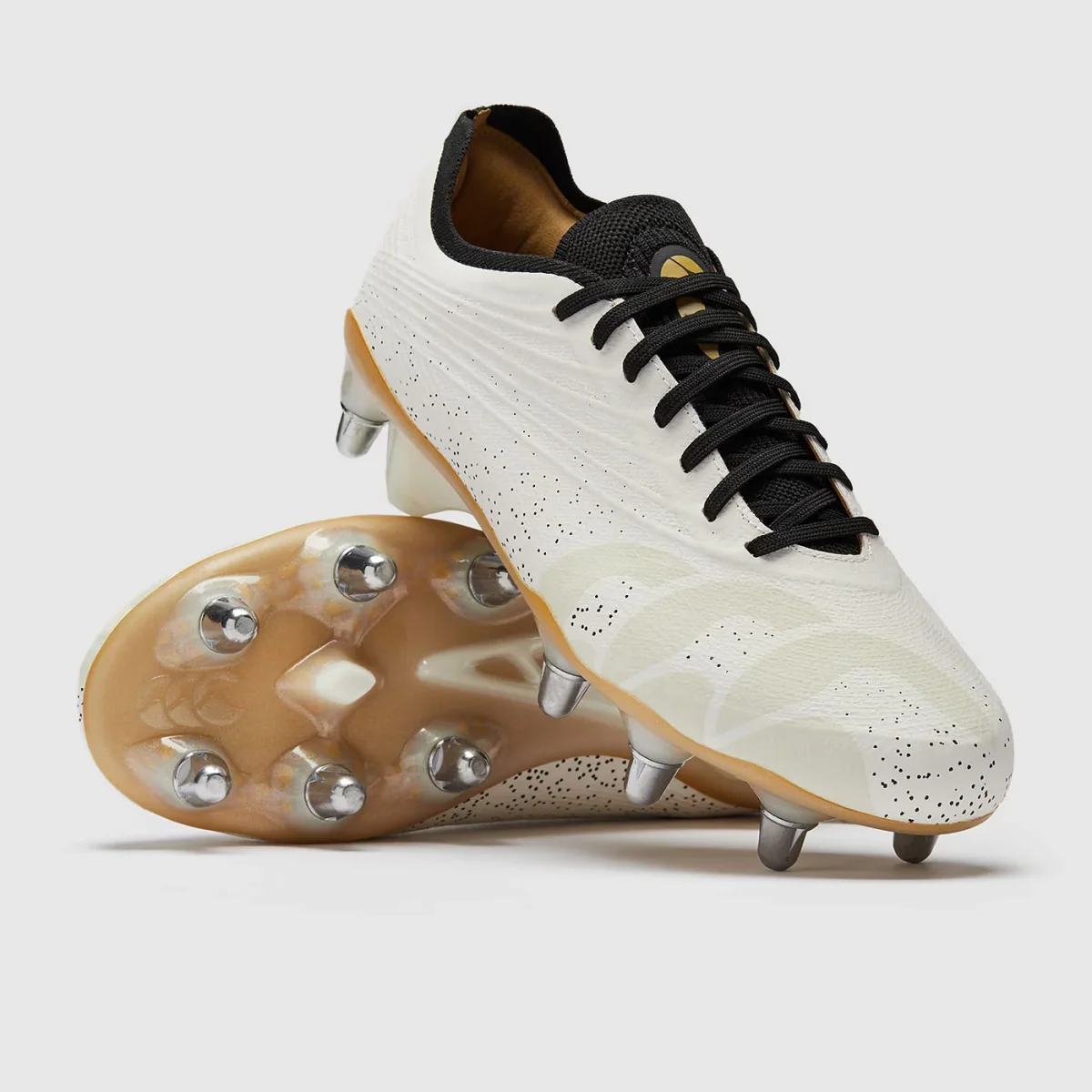 Élaborées pour les joueurs de haut niveau, les chaussures à crampons Stampede Groundbreak Elite SG de Canterbury sont conçues pour offrir un maximum de puissance, de maintien et d’adhérence sur terrain gras. Idéales pour les avants puissants, elles sont dotées de huit crampons métalliques de 18 mm et de crampons de soutien pour une traction supérieure en mêlée ou sur les phases de contact. Leur tige légère en TPU Skin protège efficacement le pied tout en conservant une légèreté essentielle à la performance.