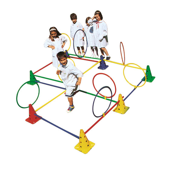 Mini parcours constitué d’enjambements et de passages dans les cerceaux.