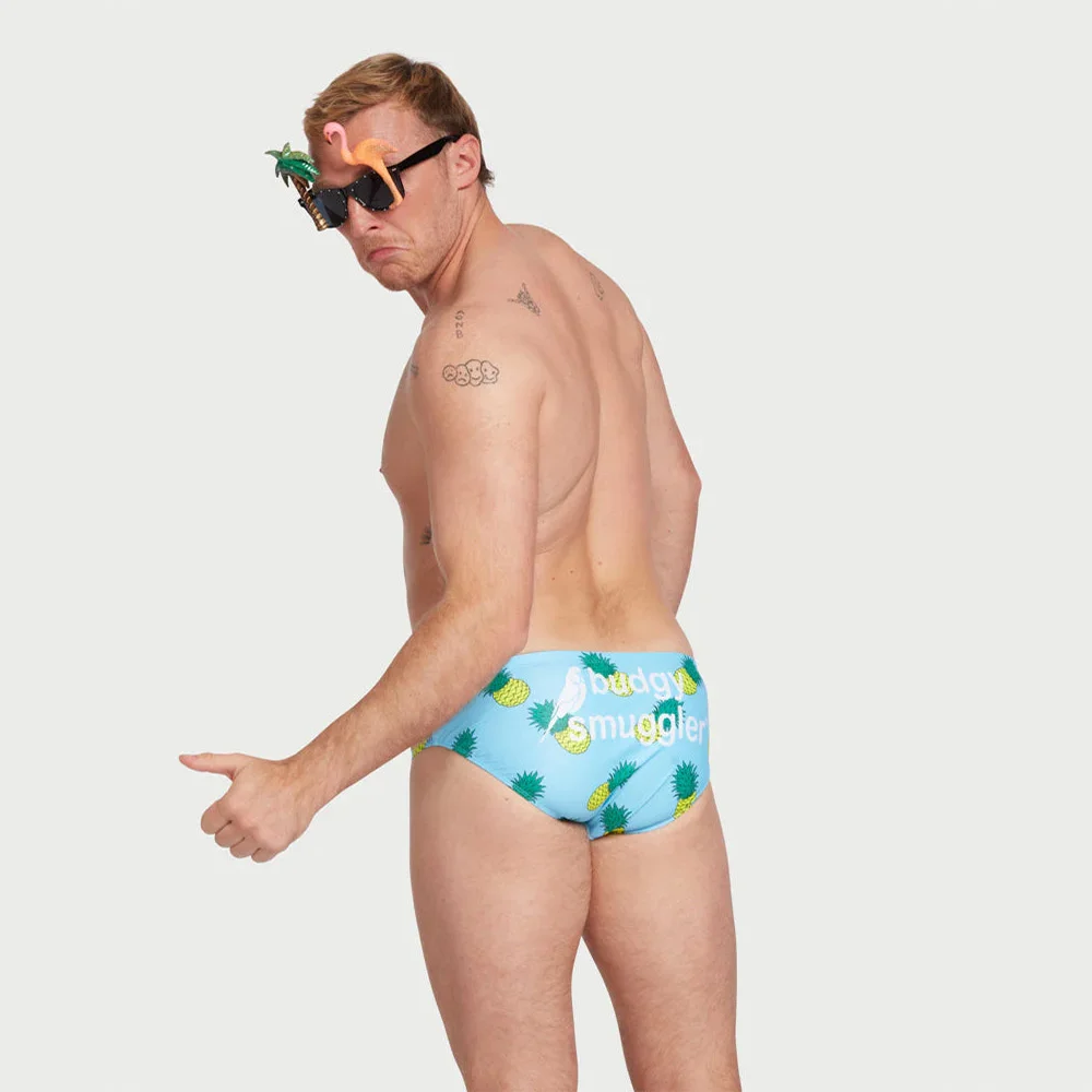 Confectionné avec soin, ce maillot de bain incarne l’esprit libre et provocateur de la marque australienne Budgy Smuggler. Le motif ananas bleu apporte une touche de fraîcheur et d’originalité qui ne passera pas inaperçue lors de vos moments de détente aquatique.