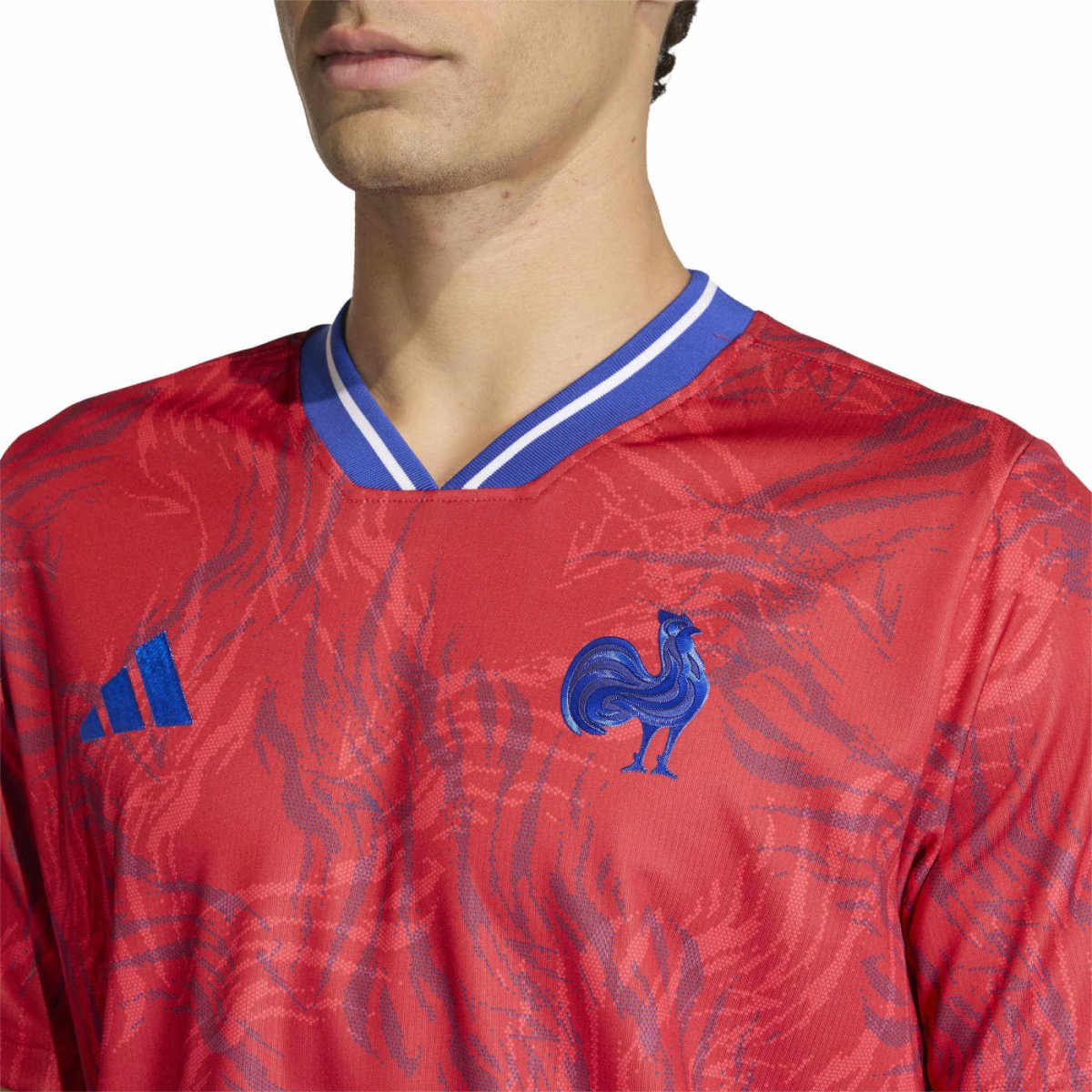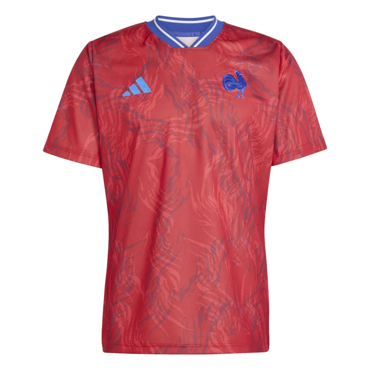 Le maillot d’échauffement France Rugby Pré-match 2025/26 incarne l’esprit combatif et la fierté nationale des Bleus. Conçu pour les moments d’avant-match où tout se joue dans la préparation, il reprend le rouge vibrant du drapeau français et les motifs inspirés de la plume du coq, symbole emblématique de la Fédération Française de Rugby (FFR).