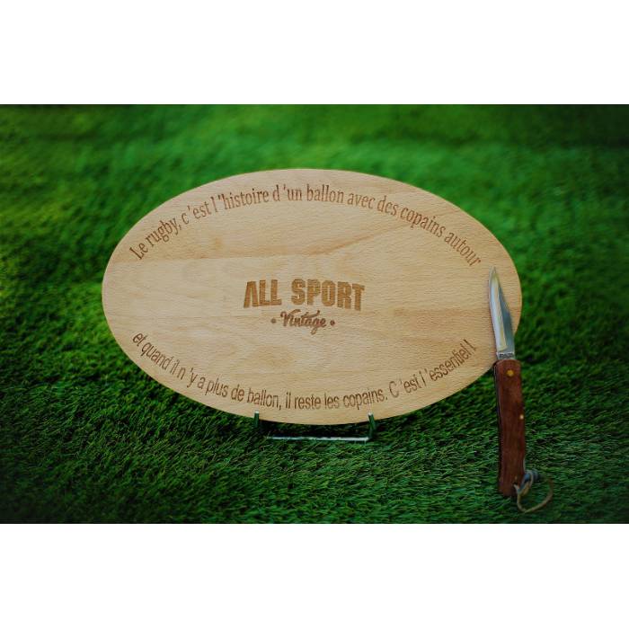 Pour un cadeau personnalisé aux amateurs de rugby, cette planche apéro combine l’utile à l’agréable, rappelant à chaque utilisation les moments de partage et de convivialité si précieux dans le monde du rugby. Elle deviendra rapidement un élément incontournable des retrouvailles entre amis rugbymen et rugbywomen, perpétuant ainsi les traditions de ce sport où l’amitié occupe une place centrale.