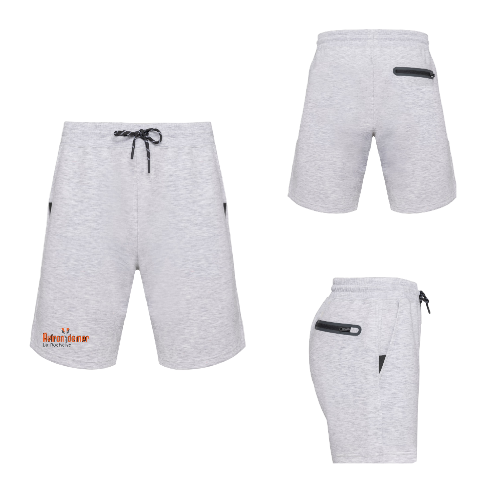 - 2 poches devant doublées jersey et 1 poche arrière zippée finition thermosoudée contrastée.