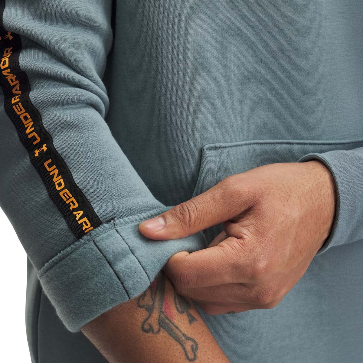 Le sweat dispose d’une poche kangourou à l’avant pour garder les mains au chaud ou transporter l’essentiel. Les poignets et l’ourlet côtelés renforcent le maintien et empêchent l’air froid de s’infiltrer. Les bandes latérales griffées apportent une touche graphique distinctive qui affirme l’identité Under Armour, avec un style affirmé et sportif.