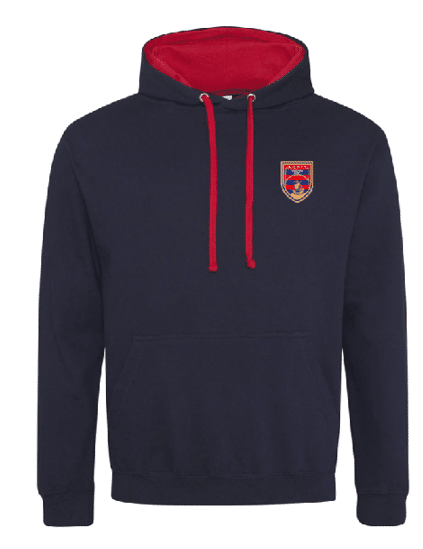 Le Sweat Capuche bicolore (Marine et Rouge) de l’ASPTT Paris avec le logo club en broderie.