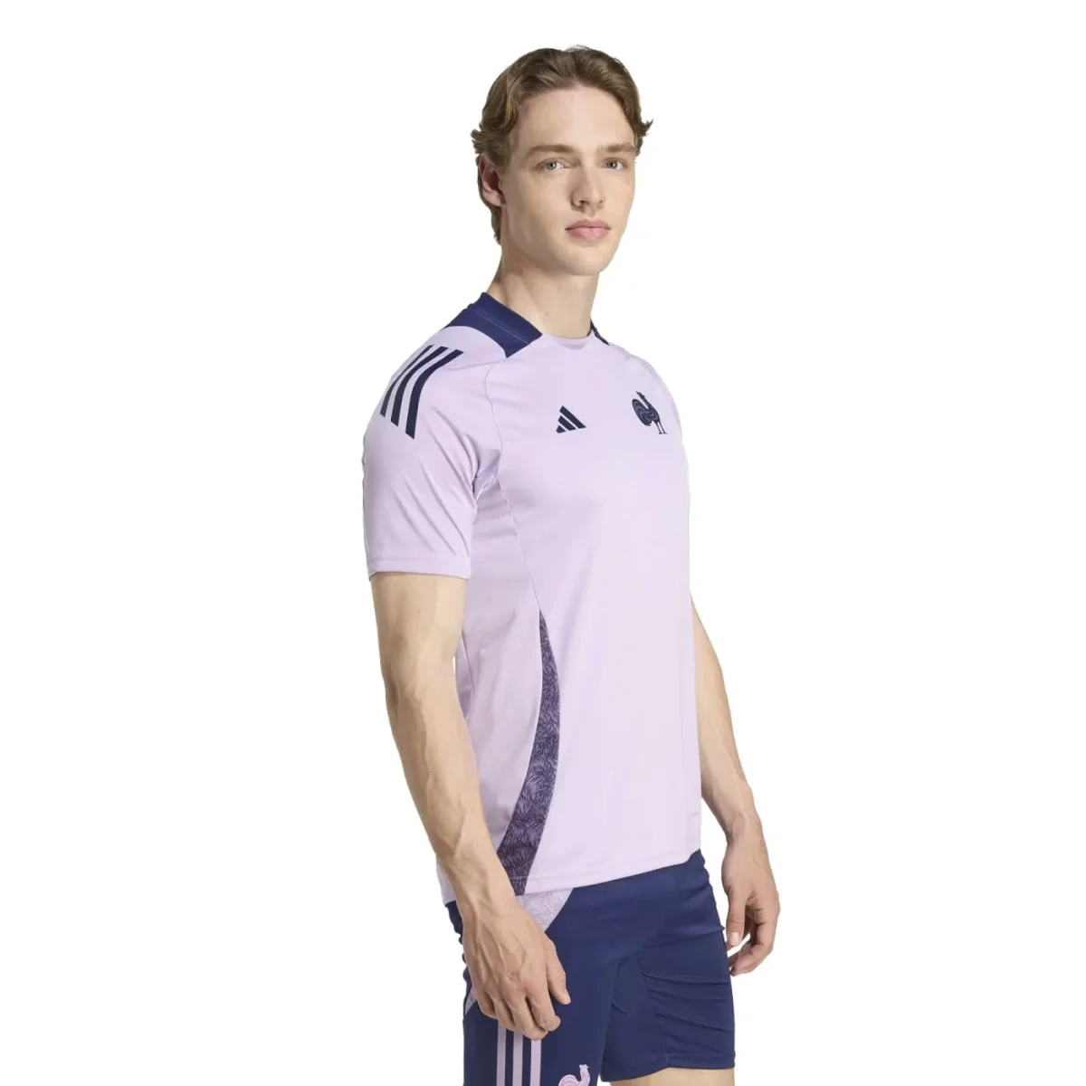 Conçu pour les défis du rugbyman moderne, ce t‑shirt d’entraînement adidas porté par les joueuses de l’équipe de France allie performance technique et esprit national. Arborant des couleurs inspirées du drapeau français et des champs de lavande de Provence, il se démarque par un style unique, mixant tradition et modernité. La coupe slim garantit un ajustement proche du corps, offrant une liberté de mouvement totale lors des sprints, plaquages et passes.