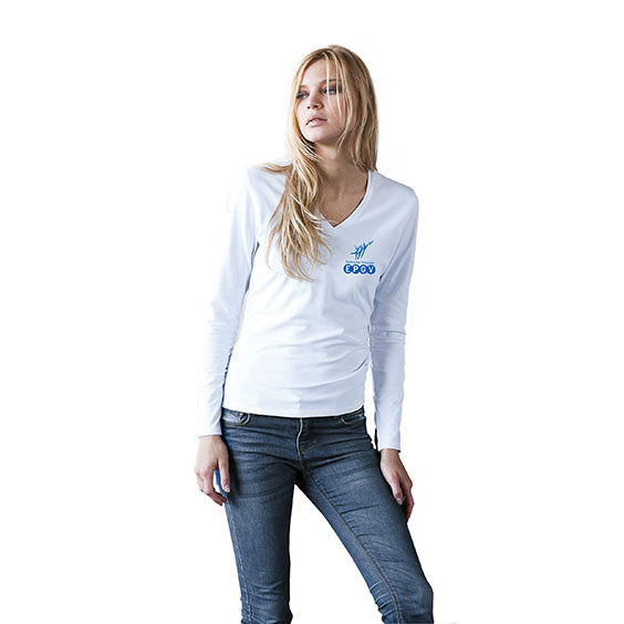 Adoptez un style à la fois élégant et confortable avec le tee-shirt femme manches longues col V FFEPGV. Confectionné en coton doux de 180 g/m², il assure une agréable sensation sur la peau tout en offrant une coupe cintrée qui met la silhouette en valeur. Son col V féminin et son logo FFEPGV placé côté cœur apportent une touche sportive et dynamique. Idéal au quotidien ou pour vos activités, ce tee-shirt femme combine confort, qualité et modernité.