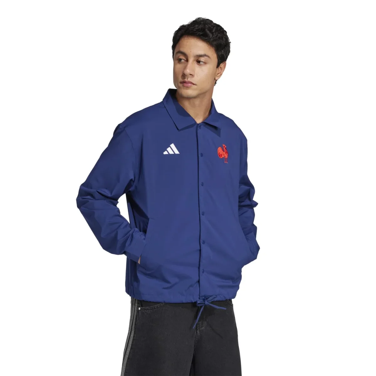 Le design élégant se distingue par sa sobriété et ses détails raffinés. Le nouveau logo Performance Adidas brodé s’harmonise parfaitement avec l’emblématique Coq de la FFR, symbole de fierté du rugby français. Un détail particulièrement distinctif orne la nuque : le drapeau français ondulant, rappelant l’identité nationale de cette pièce collection heritage.